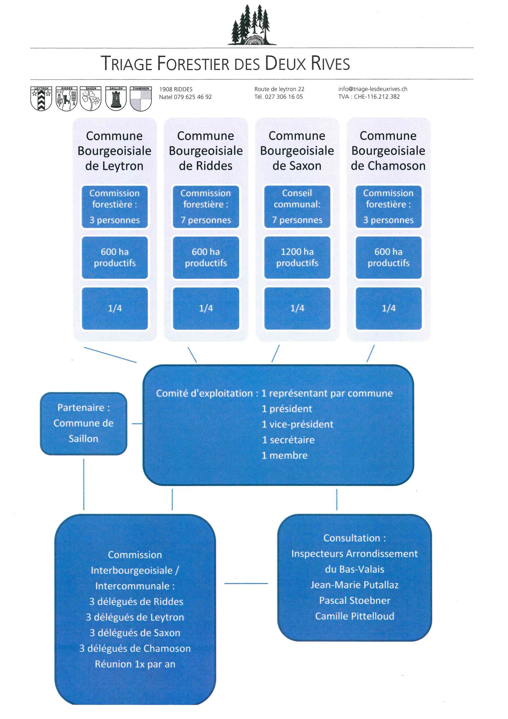 Le triage forestier des Deux Rives est une entreprise semi-publique au service des forêts des communes de Leytron, Riddes, Saillon, Saxon et Chamoson, ainsi qu'au service des consommateurs publics et privés.